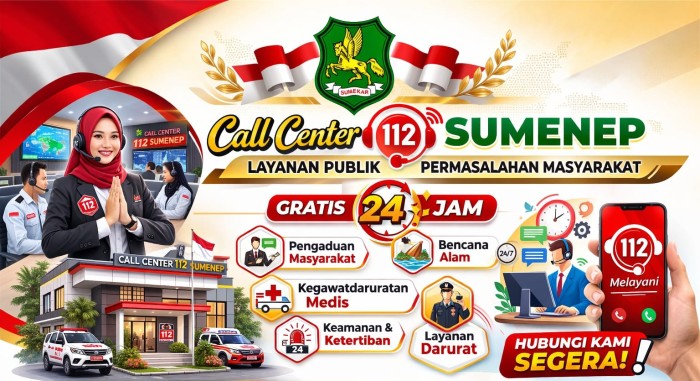 Foto: Informasi layanan Call Center 112 Sumenep yang dapat diakses masyarakat untuk berbagai aduan. Dokumentasi Redaksi.SUMENEP (RADAR9.ID) – Pemerintah Kabupaten Sumenep terus memperkuat kualitas layanan publik melalui Call Center 112 yang kini berevolusi menjadi sistem layanan terintegrasi lintas sektor. Layanan yang pertama kali diaktifkan pada 17 Agustus 2021 itu awalnya hanya difokuskan pada penanganan kondisi darurat, berlandaskan Peraturan Bupati Nomor 69 Tahun 2021.