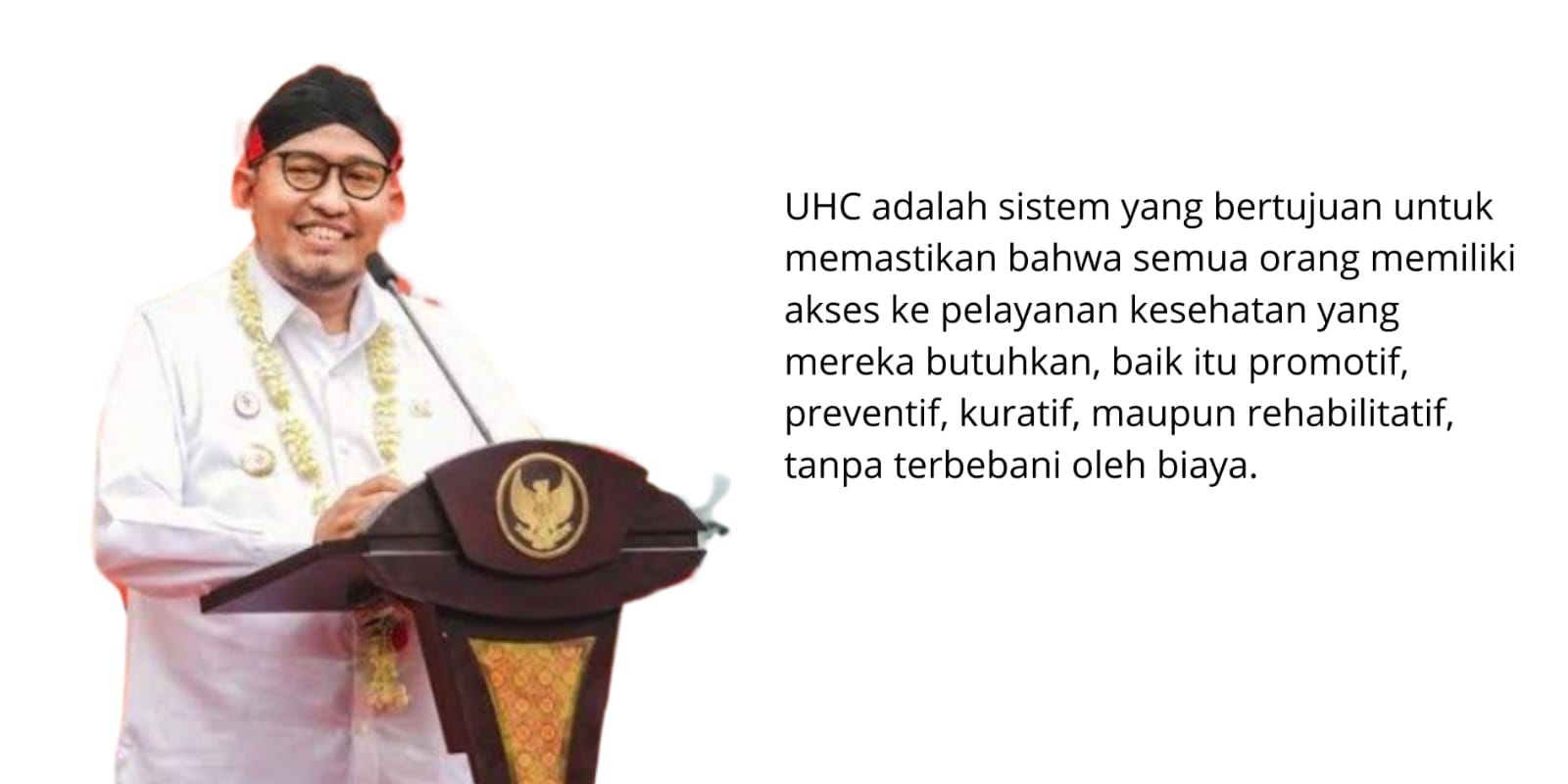 “Program Universal Health Coverage (UHC), sebagai upaya pemerintah dalam memberikan akses layanan kesehatan gratis kepada masyarakat secara merata,” katanya.